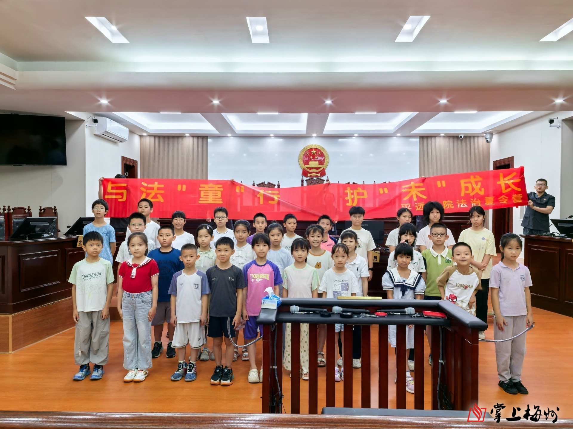 掌上梅州讯 “现在开庭!”伴随着法槌清脆的敲击声,平远县人民法院第一审判法庭内,30双小眼睛专注地凝视着庄严的庭审现场。7月15日,平远法院精心策划的“与法‘童’行·护‘未’成长”法治夏令营正式开营。孩子们沉浸式体验庭审、趣味化学习法律,在幼小的心灵中悄然埋下尊法守法的种子。