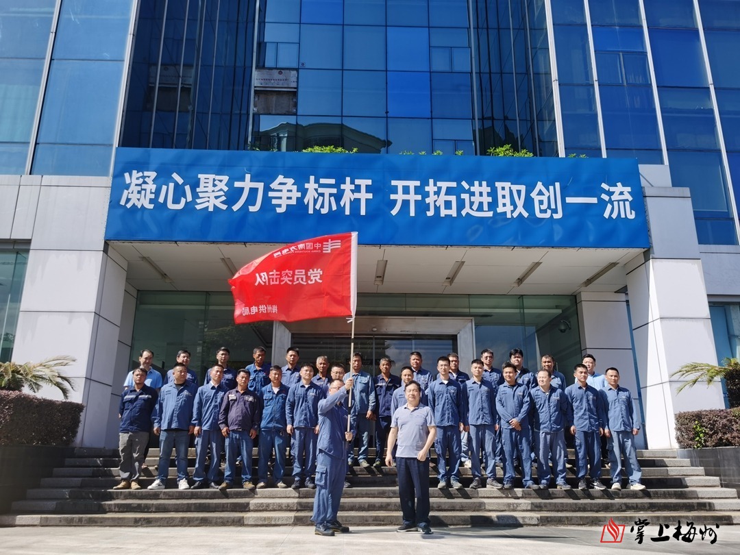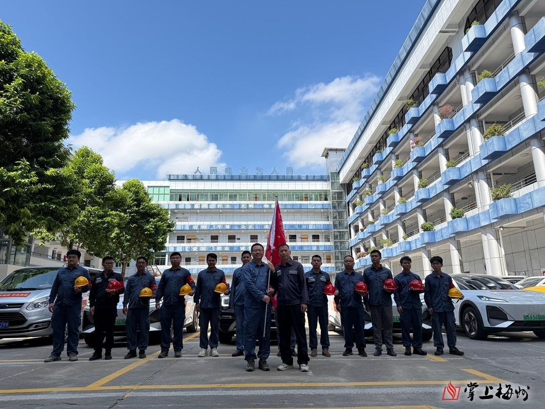 梅州丰顺供电局党员突击队接受领导授旗,队员们整装待发支援湛江电网抢修复电。(杨蓓茹 摄)
